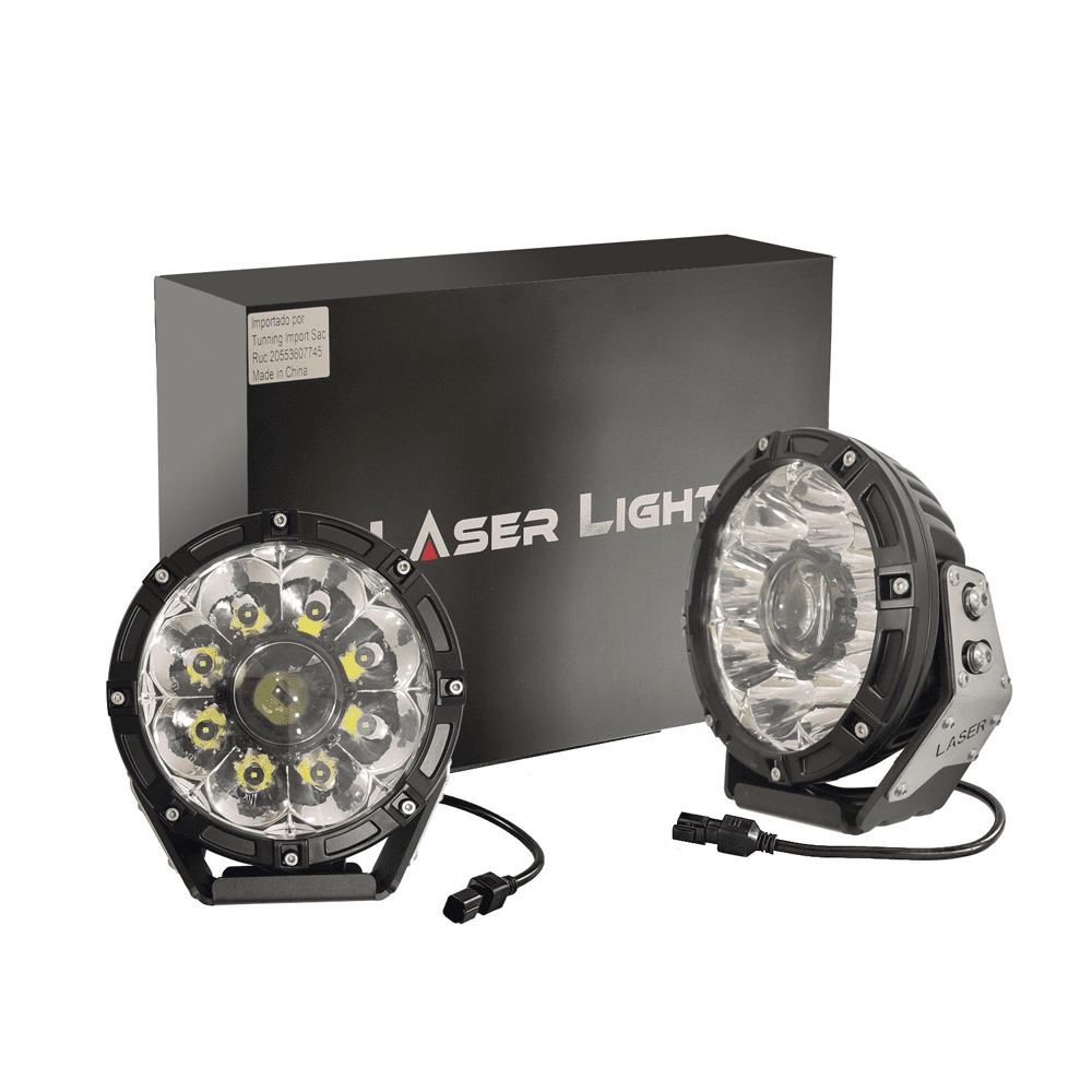 FaroLáser de 7 pulgadas (17 centimetros) de color blanco(6000 Kelvin). Alcance de luz de 2 kilometros aproximados.